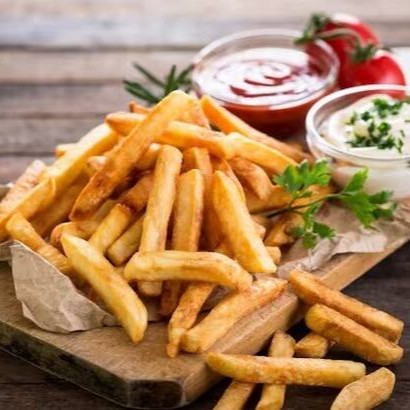 400 gramas (peso final) de fritas com bacon.