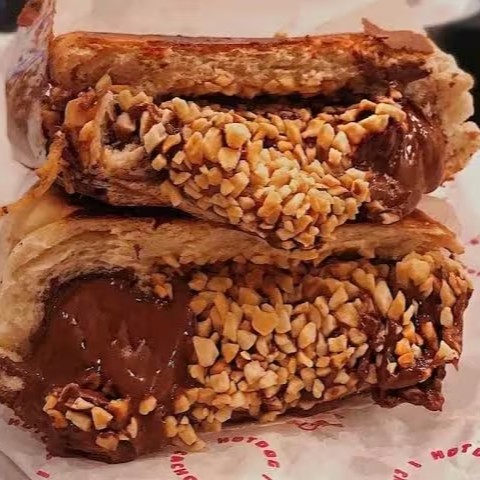 Pão de 15cm, chocolate branco ou preto com amendoim