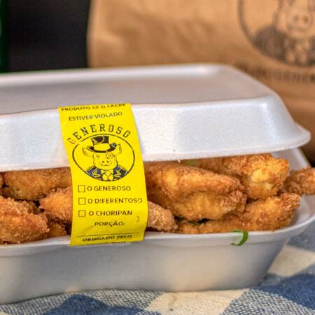 Porção Mista de iscas de carne suína, e iscas de carne de frango (filé de peito), empanadas na Farinha Panko e fritas. Aproximadamente, 350g.