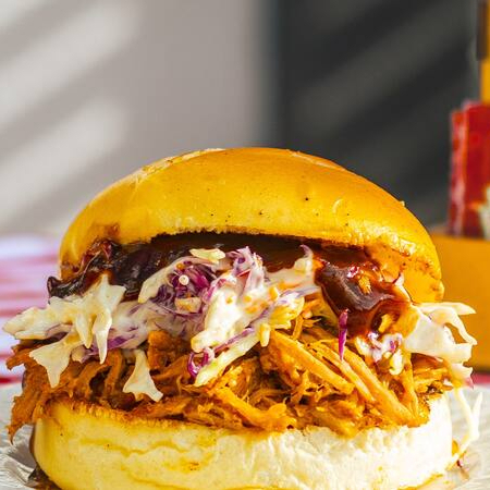 Nosso carro chefe, o mais pedido e elogiado, uma releitura em homenagem ao clássico curitibano Pão com Pernil. Pão, carne suína desfiada (copa lombo, 150g), com gostinho defumado, salada de repolhos e cenoura envolvidos com maionese caseira, um toque de barbecue. É A Combinação Perfeita, Prove!! Serve 1 pessoa