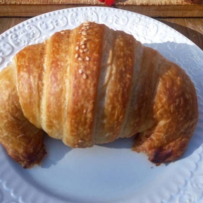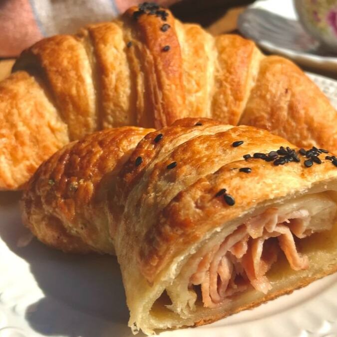 O Croissant de queijo e presunto, aquela ótima combinação com um café o Croissant de queijo e presunto.