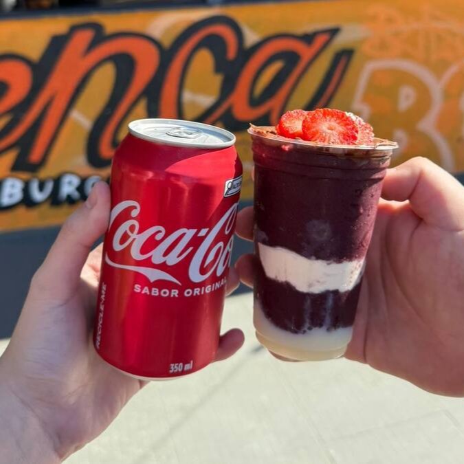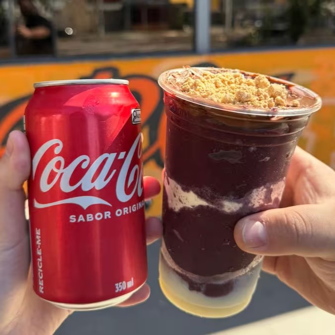 Copo de açaí de 500ml com paçoca, nutela, leite condensado e leite em pó + coca cola Original