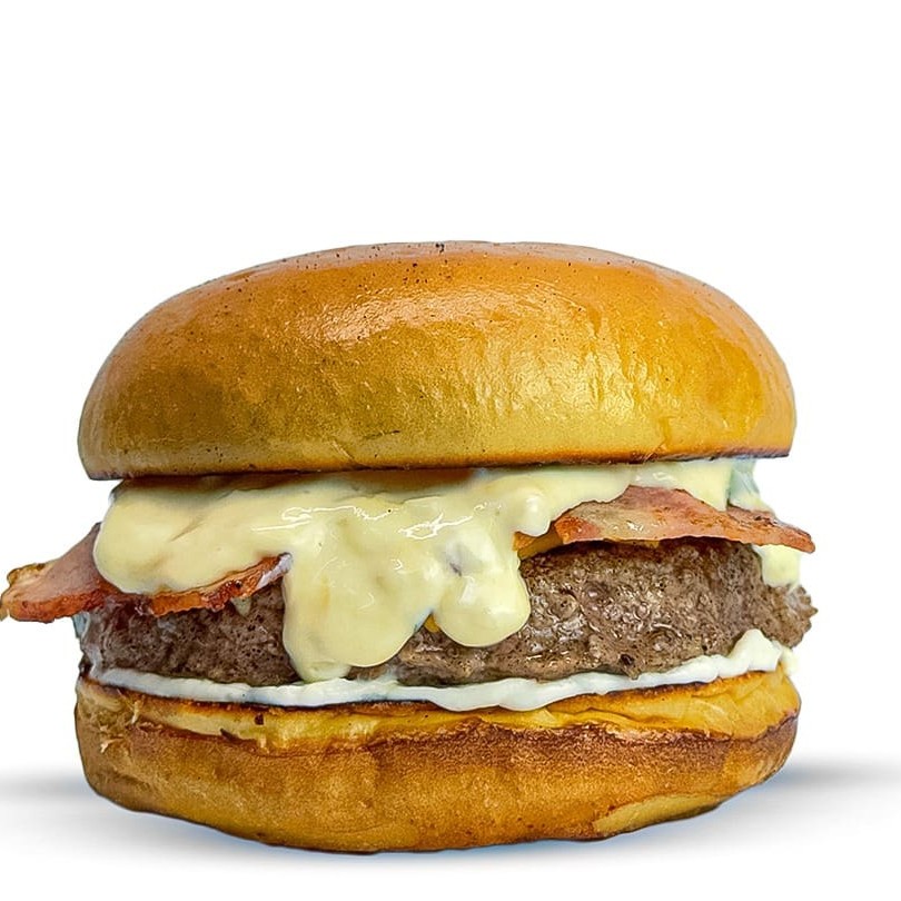 Pão brioche macio e levemente tostado, hambúrguer de 180g . O cheddar entra pra dar aquele sabor encorpado, mas quem rouba a cena é o creme de alho artesanal, que chega suave e marcante, sem pedir desculpas. Finalizando com bacon fatiado crocante e maionese da casa.