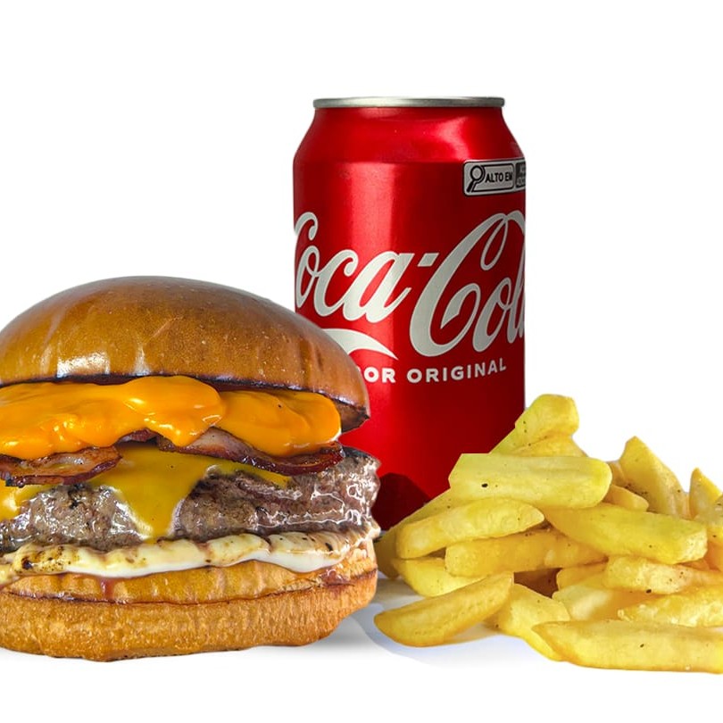 Combo do nosso Golden Oak ( bacon cheddar ) acompanha batata 120g e coca cola 350 ml