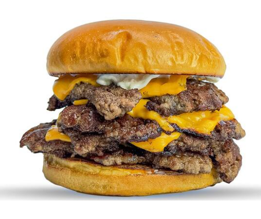 Pão brioche, 4 Smash de 90g cada, bem selados, com aquela casquinha crocante . cheddar derretido, finalizado com a clássica maionese da casa.