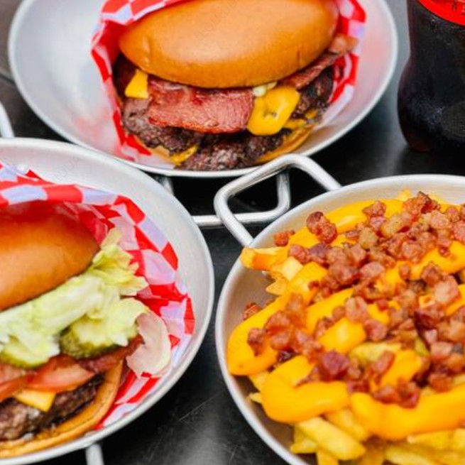 Pão Brioche selado com um hambúrguer de 180g suculento, coberto com cheddar fatiado e uma camada generosa de cheddar cremoso que escorre com atitude. O bacon fatiado, crocante e maionese da casa.