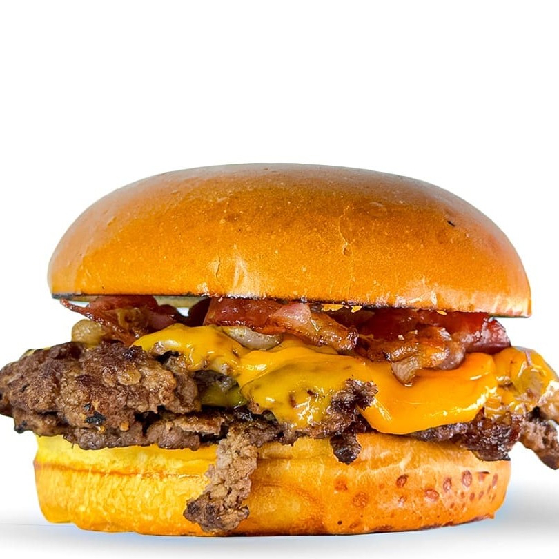 Dois smashs 90g , queijo cheddar e bacon crocante . Maionese da casa . Tudo isso no pão brioche selado pra fechar com chave de ouro.