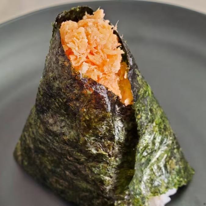 Neste Oniguiri utilizamos quantidade extra de ume afim de obtermos um sabor de frutas cítricas que se espalham dentro da boca ao saborear o Oniguiri.
