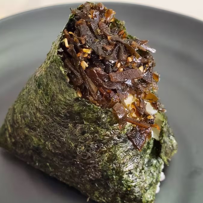 Kombu (alga marinha) cozinhar em molho de soja, mirin, Saquê e açúcar (Tsukudani). É um sabor muito popular no Japão, com o aroma do mar.