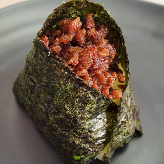 Carne bovina e suína moída cozida em açúcar e molho de soja. O sabor doce o torna um ingrediente ideal para crianças e adultos.