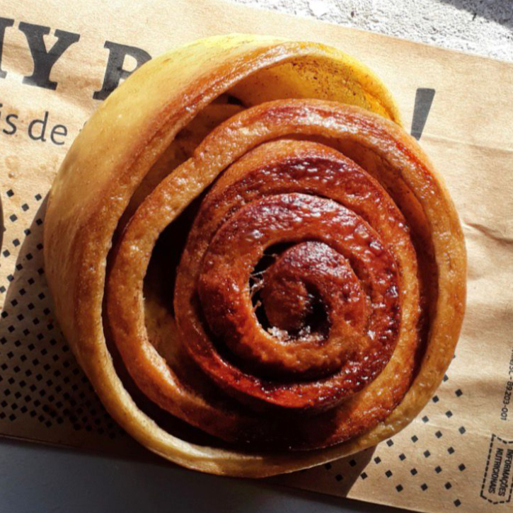 Massa fofinha e delicada, preparada com fermentação lenta, enrolada com generosa camada de açúcar e canela, que libera um aroma envolvente enquanto assa. Finalizado no ponto perfeito, com interior macio e úmido e leve toque caramelizado por fora — cada pedaço é puro conforto em forma de doce. Perfeito para acompanhar um café especial ou para adoçar o seu dia a qualquer hora.