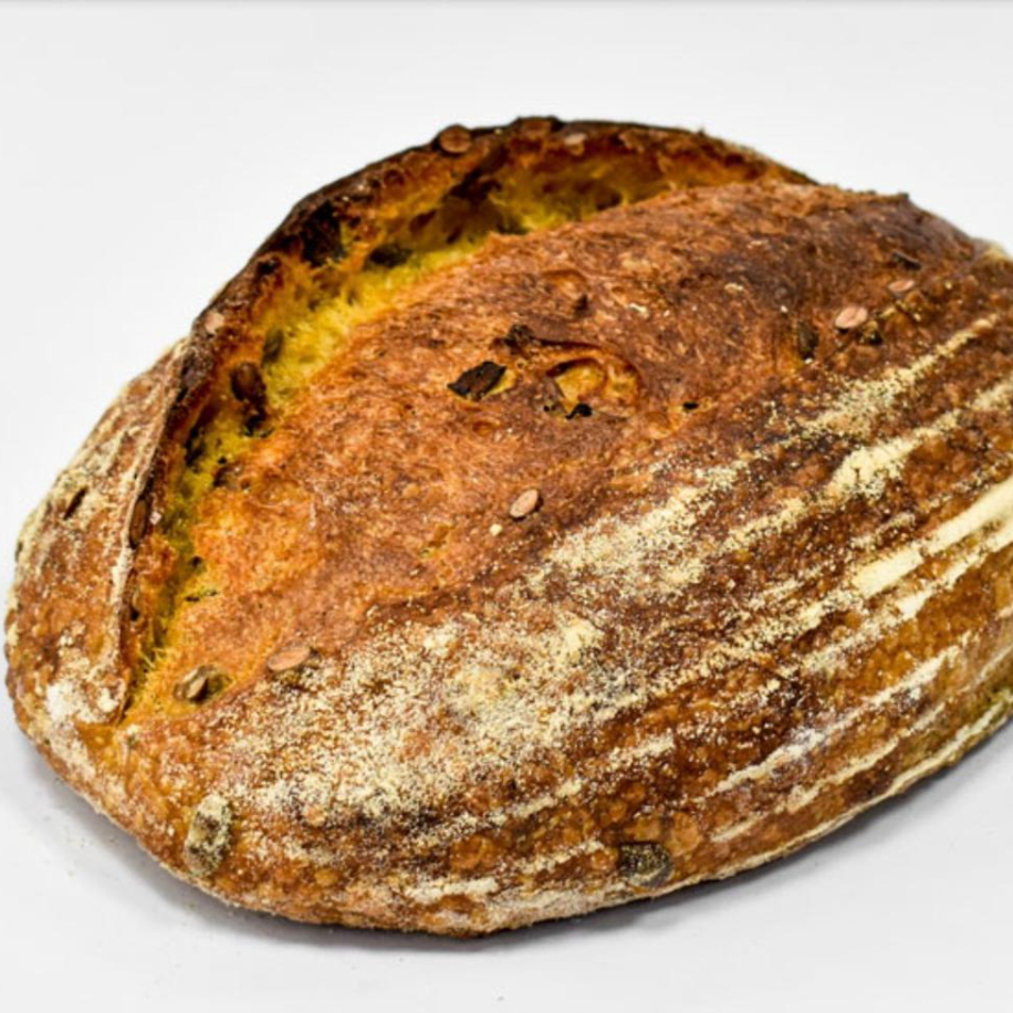 Praticidade que facilita sua rotina: disponível fatiado e congelado, para você retirar apenas o que for consumir e aquecer no forno ou na torradeira. Em minutos, pão quentinho, fresco e cheio de aroma — como se tivesse acabado de sair da fornada! Maciez, leve adocicado natural e muito sabor em cada fatia! Nosso pão é produzido com fermentação natural (levain), respeitando o tempo da massa para desenvolver aroma, textura e mais digestibilidade. A abóbora deixa o miolo úmido e macio, com uma cor linda e sabor delicado, enquanto as sementes de abóbora trazem crocância e um toque tostado irresistível. Equilíbrio perfeito entre suavidade e textura! Ideal para o café da manhã, lanches ou para acompanhar queijos e pastinhas. Tenha sempre em casa e aproveite quando quiser!