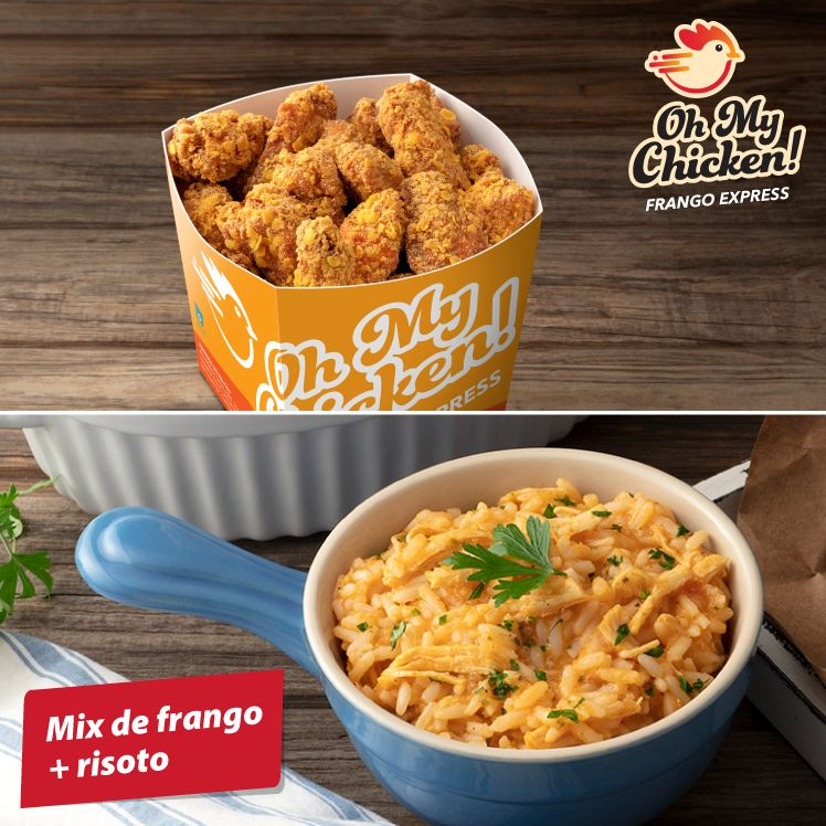 700 gramas de mix de frango empanado, e 500 gramas de risoto de frango