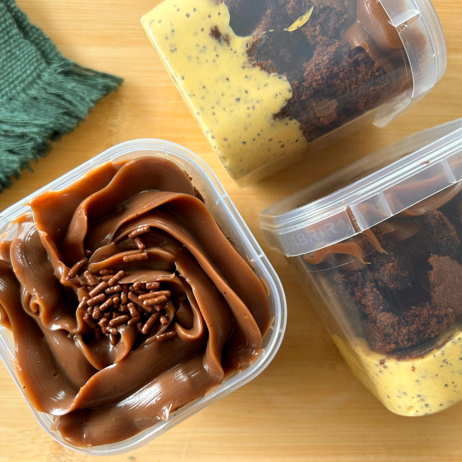 Imagine uma fatia irresistível de brownie gourmet, com casquinha crocante por fora e um interior macio e chocolatudo. Agora, cubra essa delícia com uma generosa camada de brigadeiro de Leite Ninho, cremoso e aveludado, criando um contraste perfeito com o intenso sabor do chocolate. Para finalizar, uma bela camada de Nutella, trazendo ainda mais cremosidade e um sabor marcante de avelã. Cada mordida é uma experiência única, combinando texturas e sabores que derretem na boca. Perfeito para quem ama doces sofisticados e busca a melhor sobremesa para qualquer ocasião. Experimente essa tentação e descubra o equilíbrio perfeito entre chocolate, leite Ninho e Nutella!