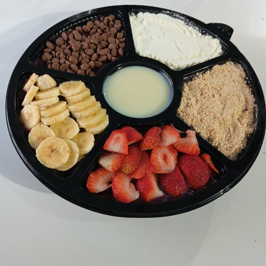 Leite condensado + Banana + Morango + Paçoca + Leite em Pó + Ovomaltine