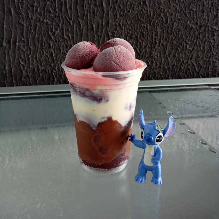 Copo 400ml com Creme de avelã + Mousse de Ninho + Mousse de Morango