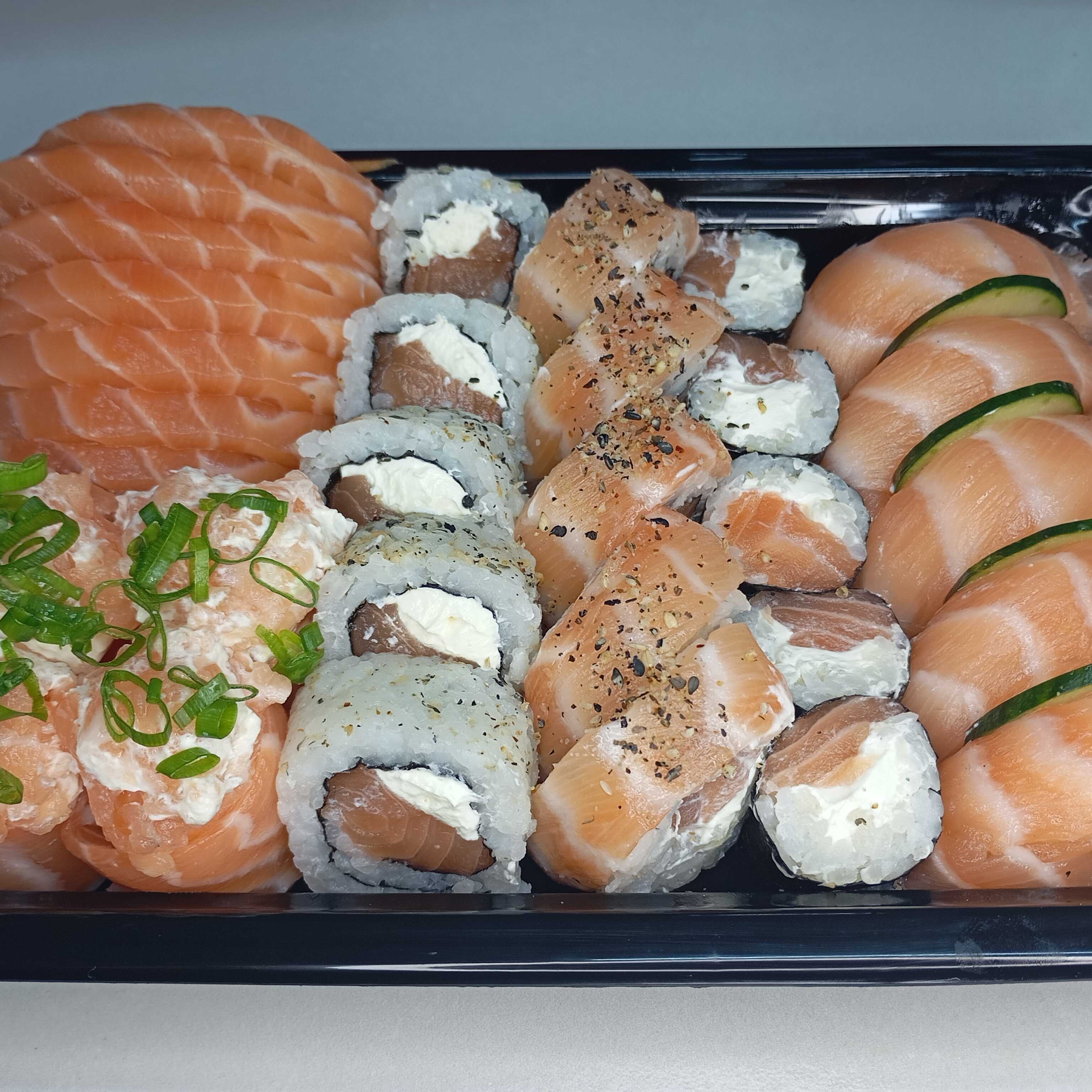10 Sashimis de Salmão + 10 Uramaki Filadélfia + 8 Hossomaki Pepino