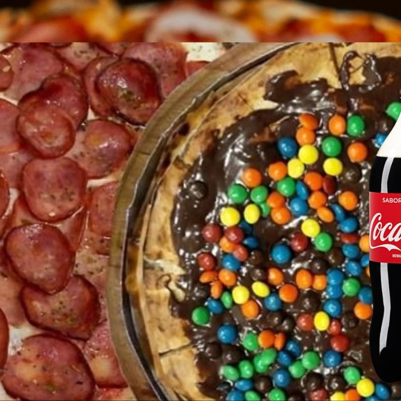 1 Pizza Grande Salgada Meio A Meio + Pizza Média Doce + Coca 2l