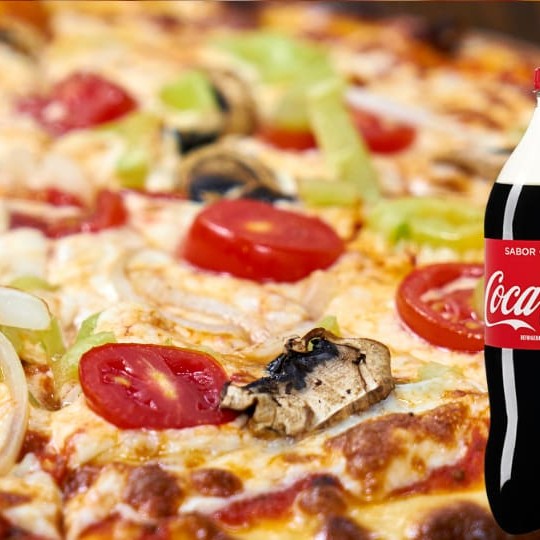 1 Pizza Big 12 fatias escolha 3 sabores + Coca-Cola 2l