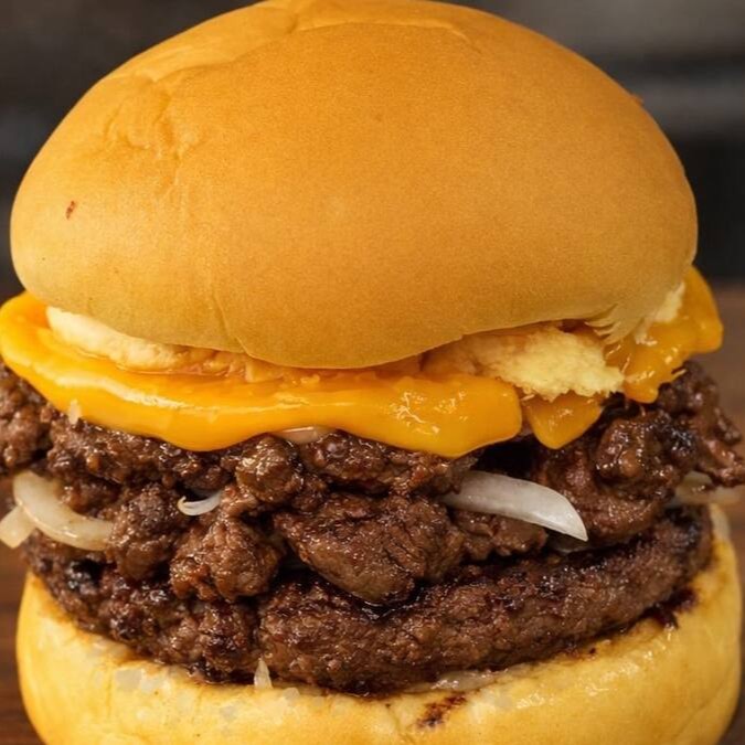 Pão, molho, carne, cheddar, cebola e batata palha