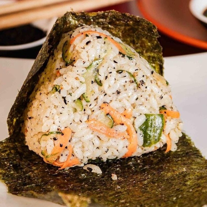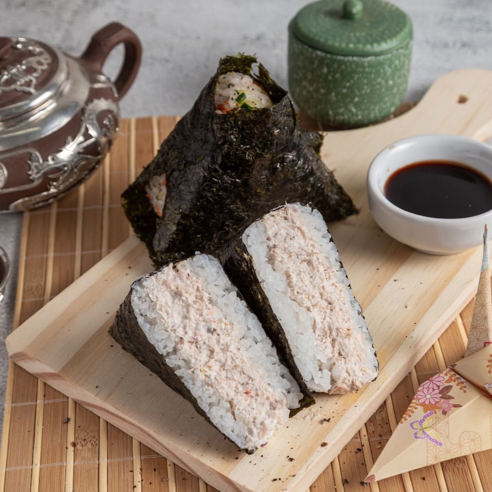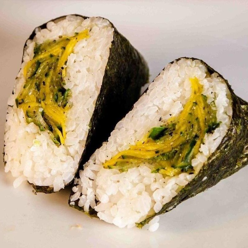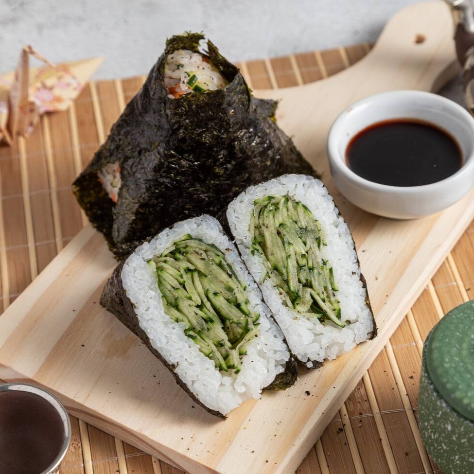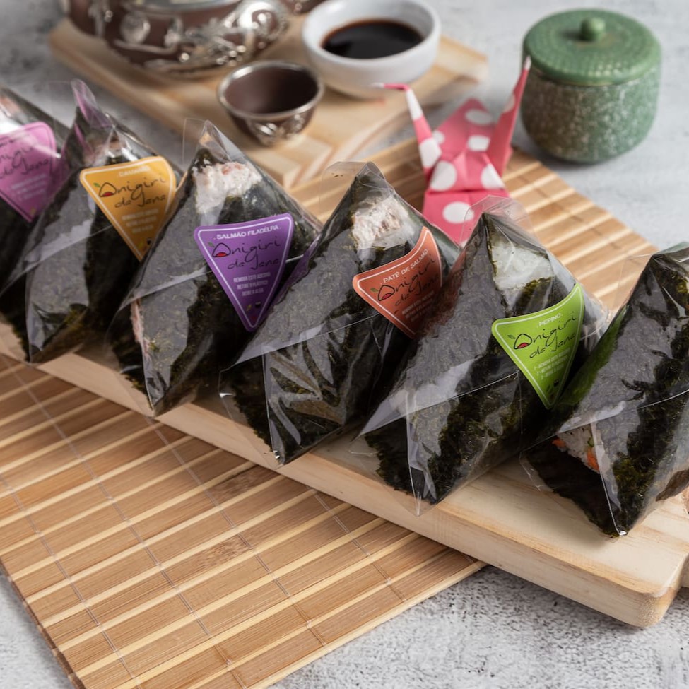 Um lanche tradicional japonês saudável e delicioso. Ele é feito com arroz japonês, alga nori e tem vários tipos de recheios! Ele vem em uma embalagem especial, que mantém a alga seca, deixando-a crocante! É feito para comer com a mão, sem necessidade de hashis, e você pode levá-lo para onde quiser! Prático, nutritivo, saboroso e faz crock!