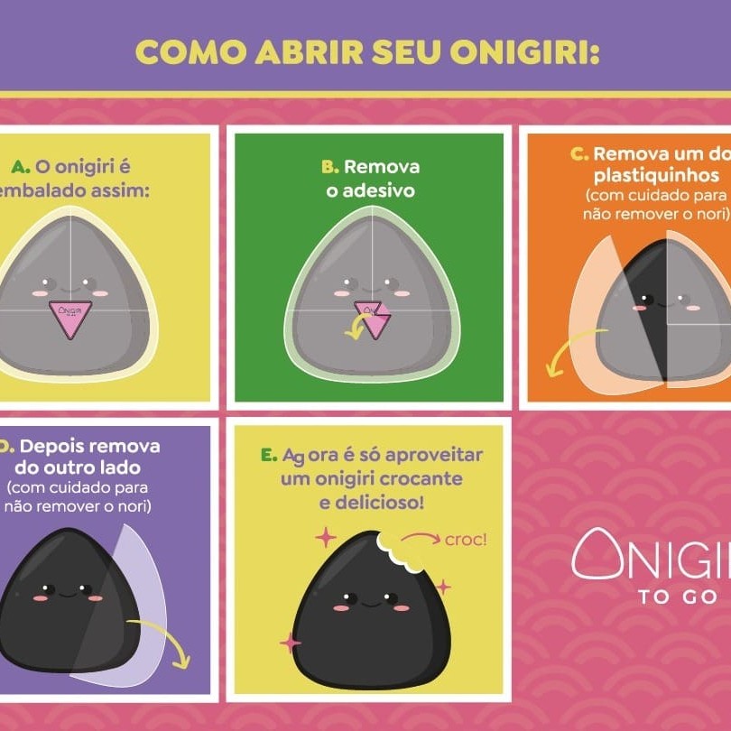 A embalagem é especial e tem um jeito especial de abrir para deixar a alga sequinha e crocante! Se liga na imagem e bom Onigiri para você!