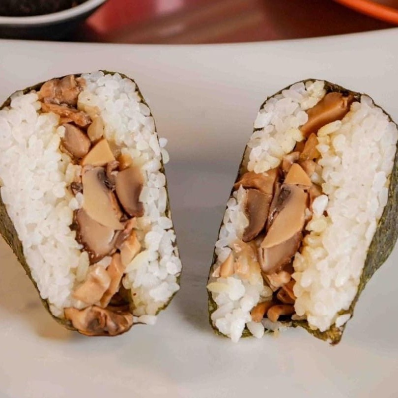 Uma unidade de onigiri de cogumelo. Onigiri deliciosamente recheado com mix de cogumelos refogados no shoyu e cebola roxa. Acompanha 1 sachê de shoyu! Prático, nutritivo, saboroso e faz crock! Uma unidade de aproximadmente 135g. Obs.: Não é possível retirar ou acrescentar ingredientes!