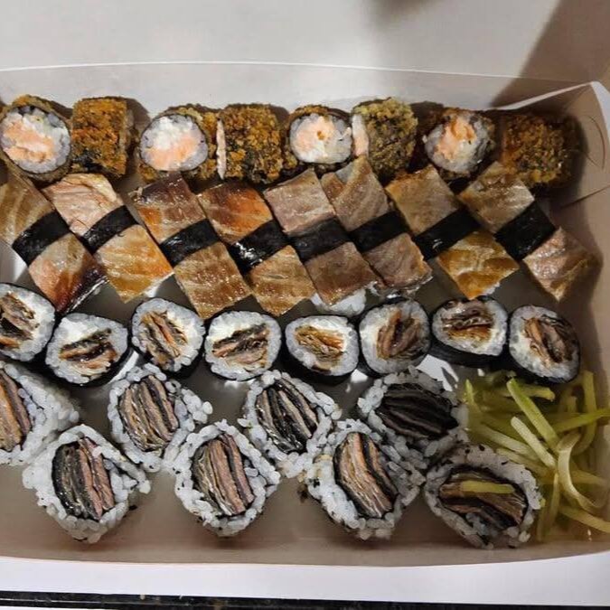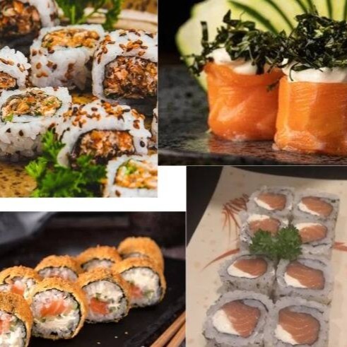 Nesse combinado o foco são os Makis 8 Uramkis philadelfia Salmão cream cheese 8 Uramki california especial Salmão por cima do maki , cream cheese, manga e kani 8 Uramaki skim pele de salmão grelhada 8 Uramaki Romeu e julieta goiabada, cream chesee, morango