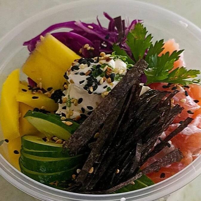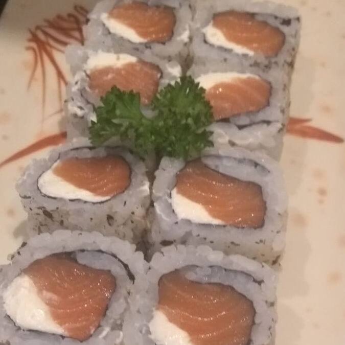 Salmão grelhado e temperado com hondashi, raspas de limão, gemgibre, cebolinha e cream Chesse!