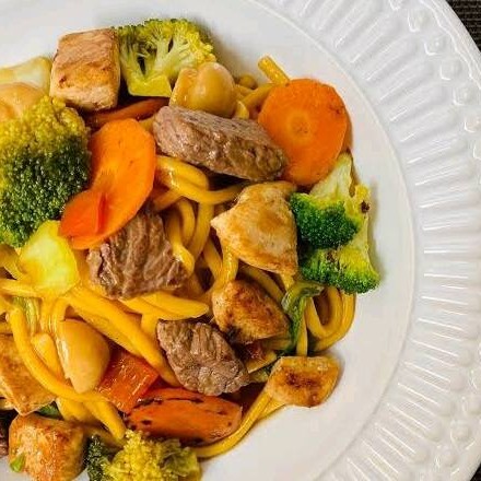 Uma porção generosa e irresistível! Macarrão oriental salteado com tiras suculentas de carne bovina, legumes frescos no ponto certo e nosso exclusivo molho artesanal Origami — equilibrado, levemente adocicado e cheio de sabor. Um clássico da culinária asiática com o toque especial da casa. Ideal para matar a fome com muito sabor! Aproximadamente 700g