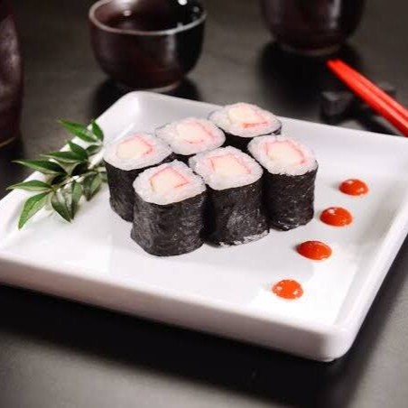 O hossomaki de kani-kama é um tipo de sushi clássico e minimalista, feito com arroz japonês temperado (shari) e kani-kama (bastão de carne de caranguejo processada), envoltos em uma folha de alga nori.