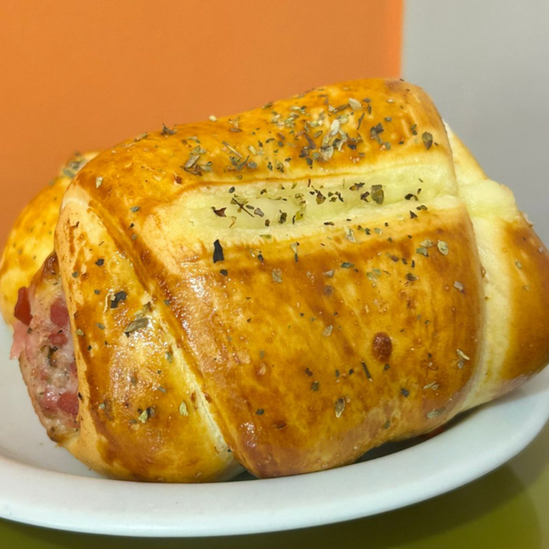 Massa crocante recheada com queijo derretido, presunto, tomate e orégano. Feito na hora, quentinho e irresistível.