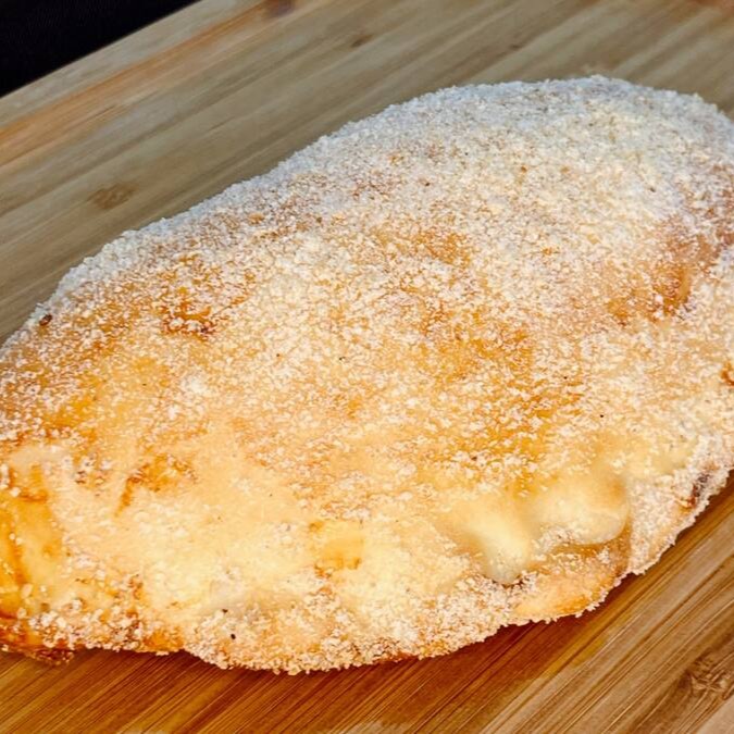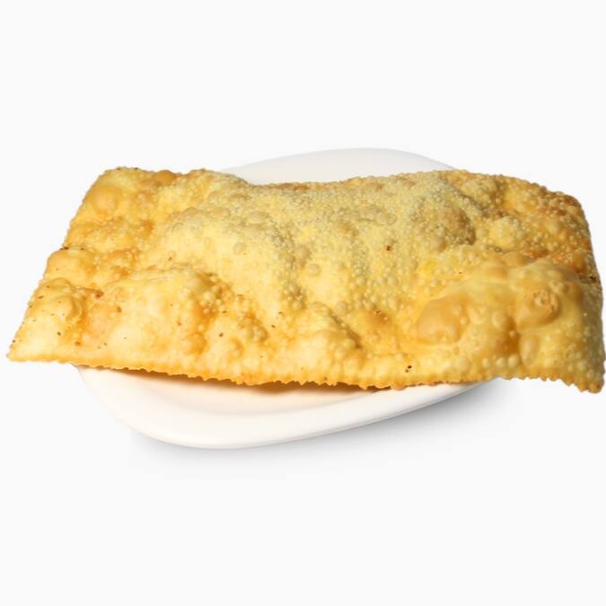 Pastel grande recheado de queijo, presunto, tomate e orégano.