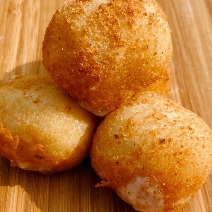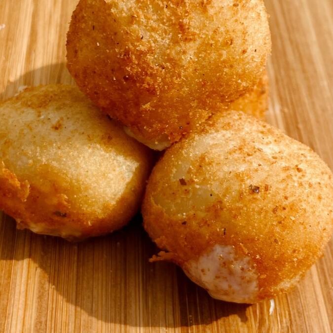 Massa de batata recheada com uma mistura deliciosa de frango e requeijão