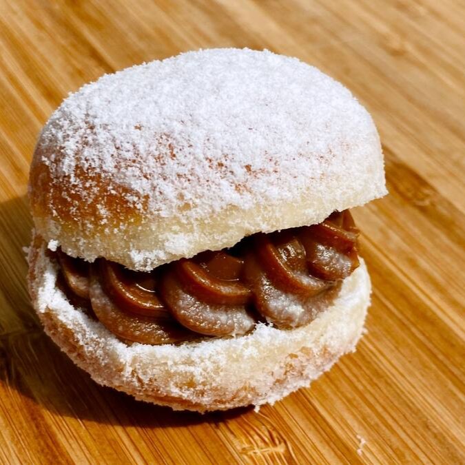 Super combo 3 mini sonhos. Sabores conforme disponibilidade nas opções: creme, chocolate, doce de leite e goiabada