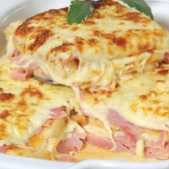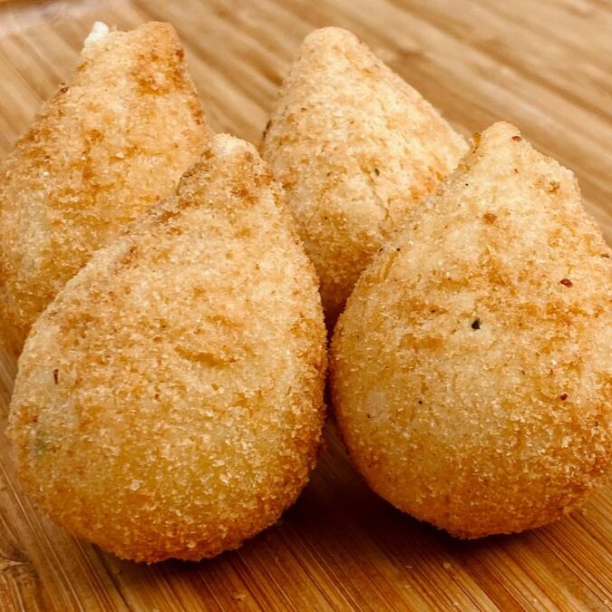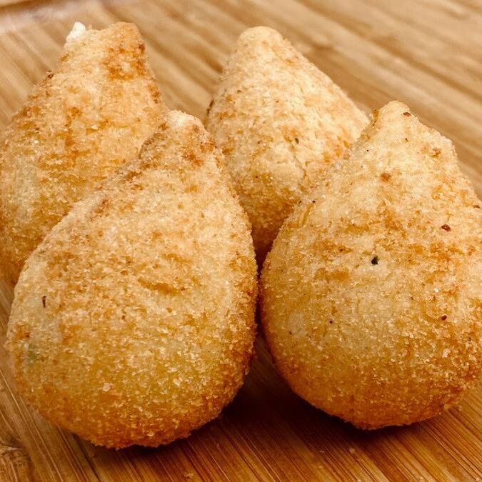 Massa de batata recheada com uma mistura deliciosa de frango e uma generosa camada de requeijão