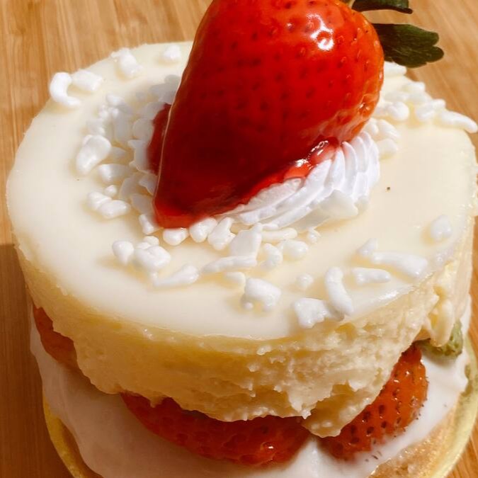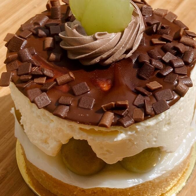 Massa branca, recheio de brigadeiro branco, nata, leite condensado e côco.