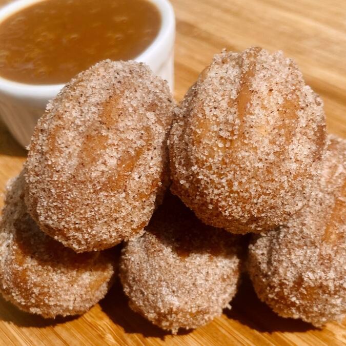 Combo 10 mini churros recheado de doce de leite e empanado no açúcar e canela