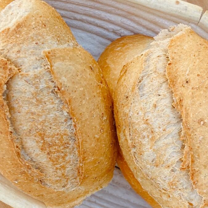 Farinha branca e farinha integral no formato do pãozinhho francês normal