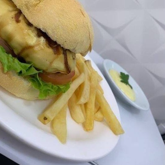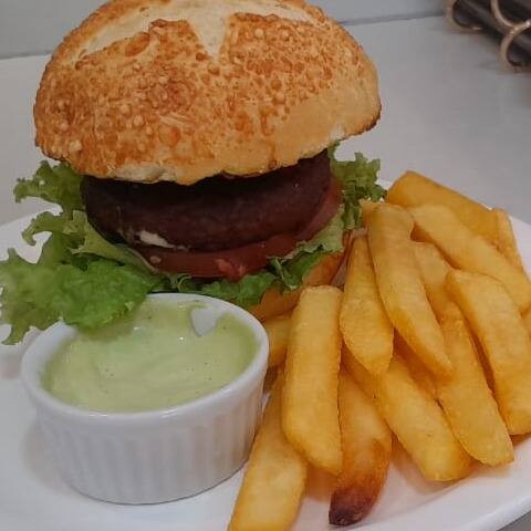 Pão Cervejinha, Hamburguer Vegetal, Cream Cheese Empanado, Alface E Maionese Artesanal