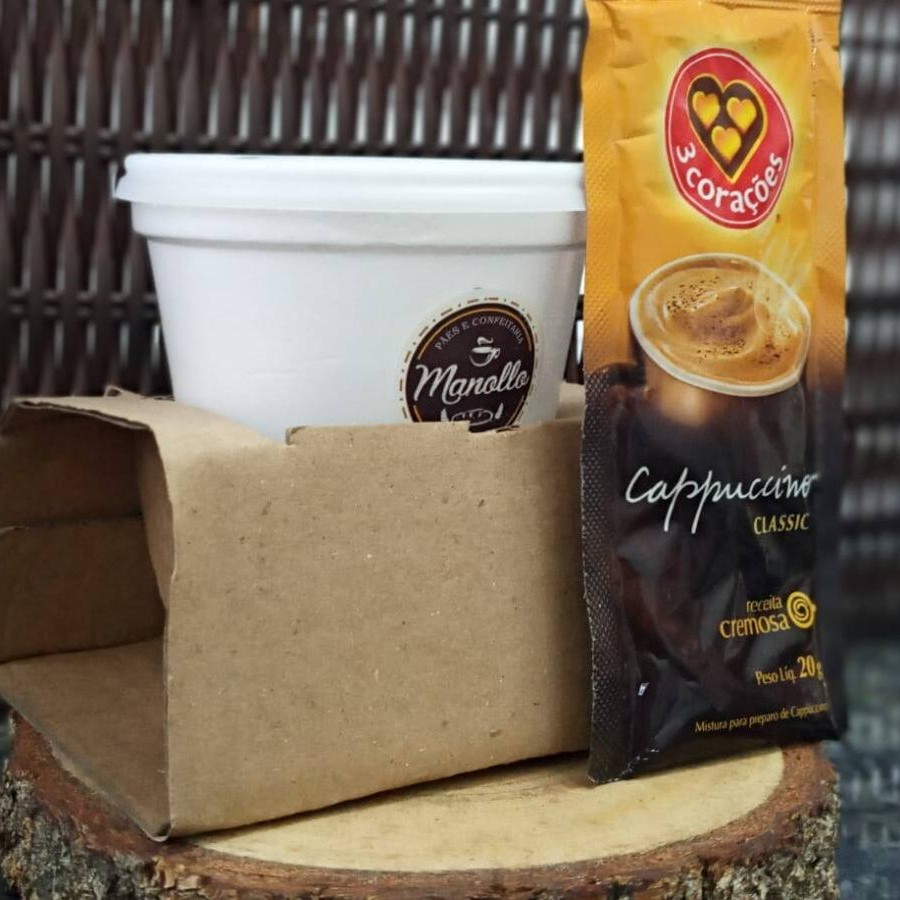 Capuccino solúvel, mistura pronta, copo térmico 237ml.