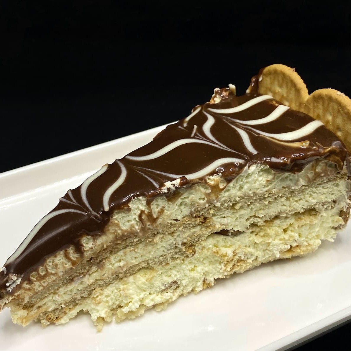 Deliciosa e bem servida fatia da tradicional torta alemã.
