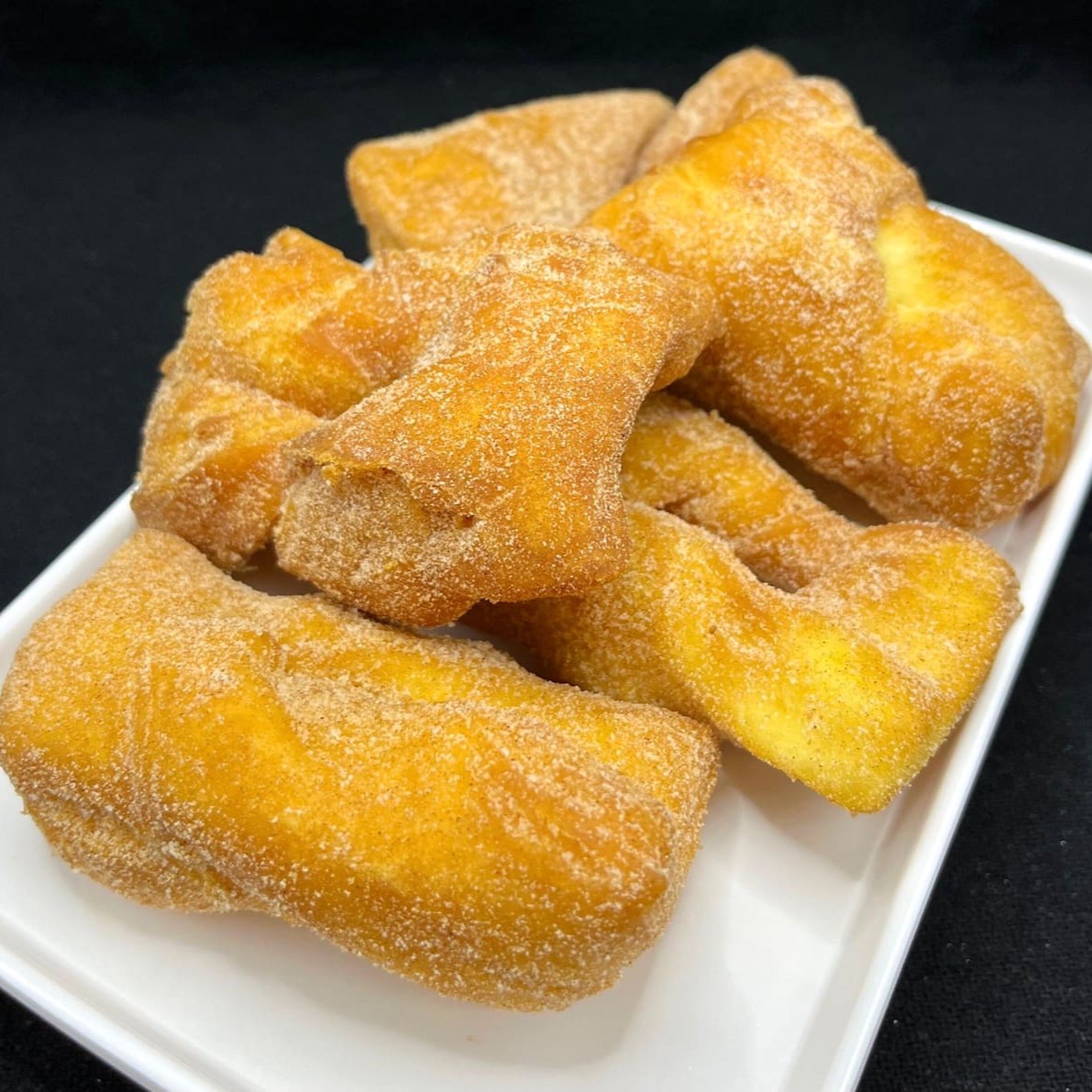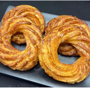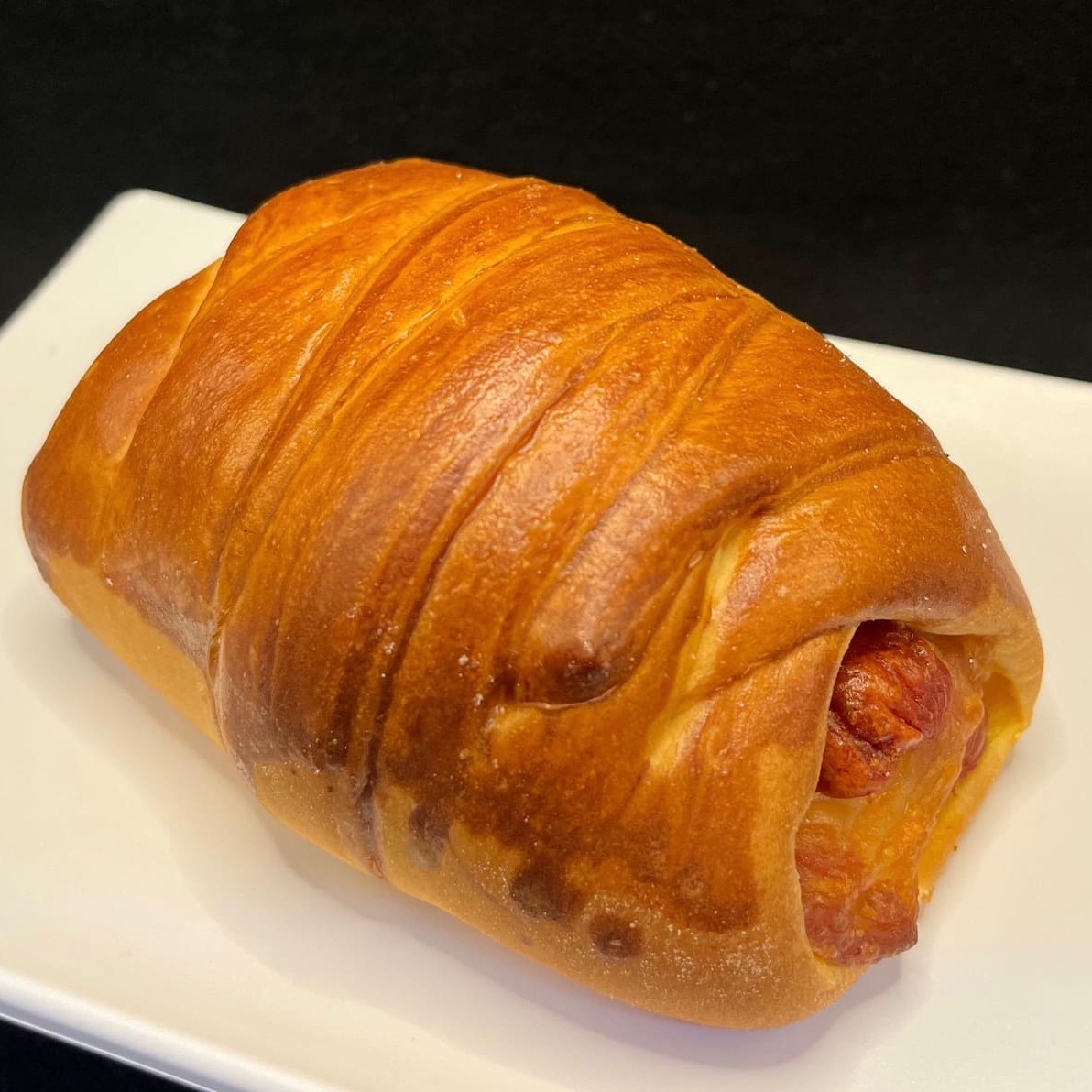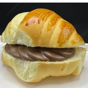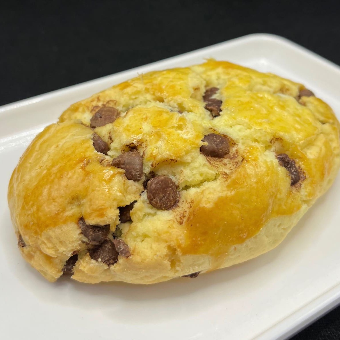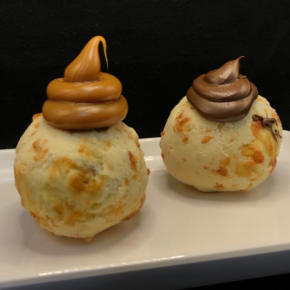 Tradicional pão de queijo recheado com chocolate de avelã, ao leite ou doce de leite.