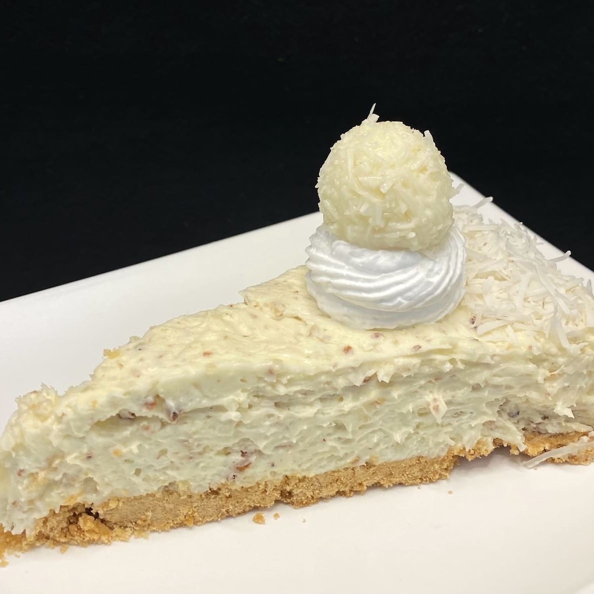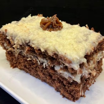 1 fatia de bolo de chocolate com cobertura de creme e coco (Prestígio)