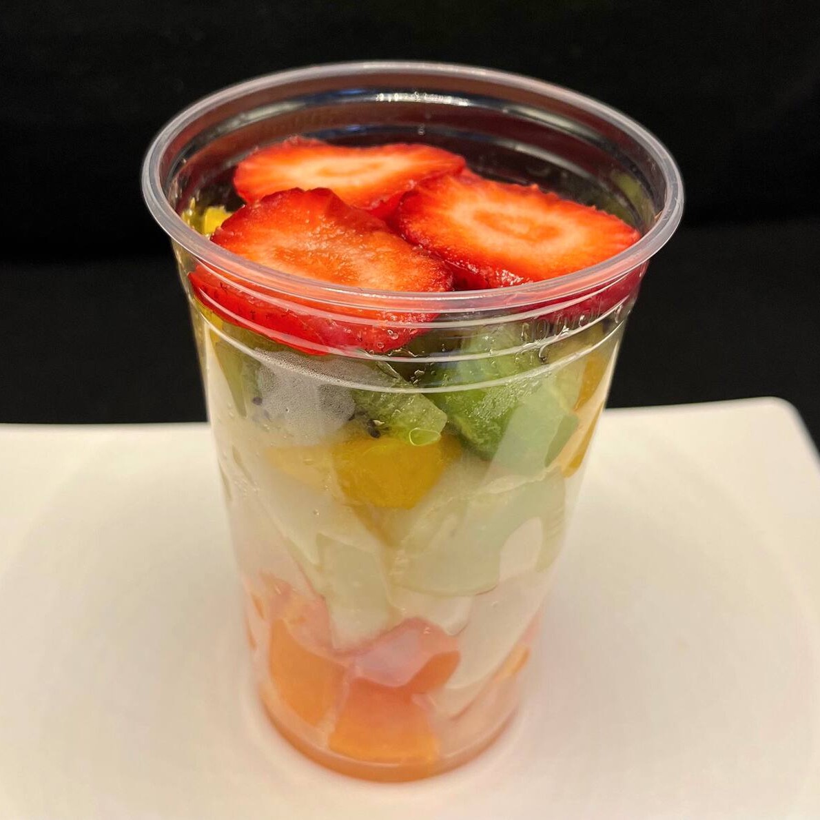 Feito com frutas fresquinhas: morango, kiwi, melão, mamão e manga.
