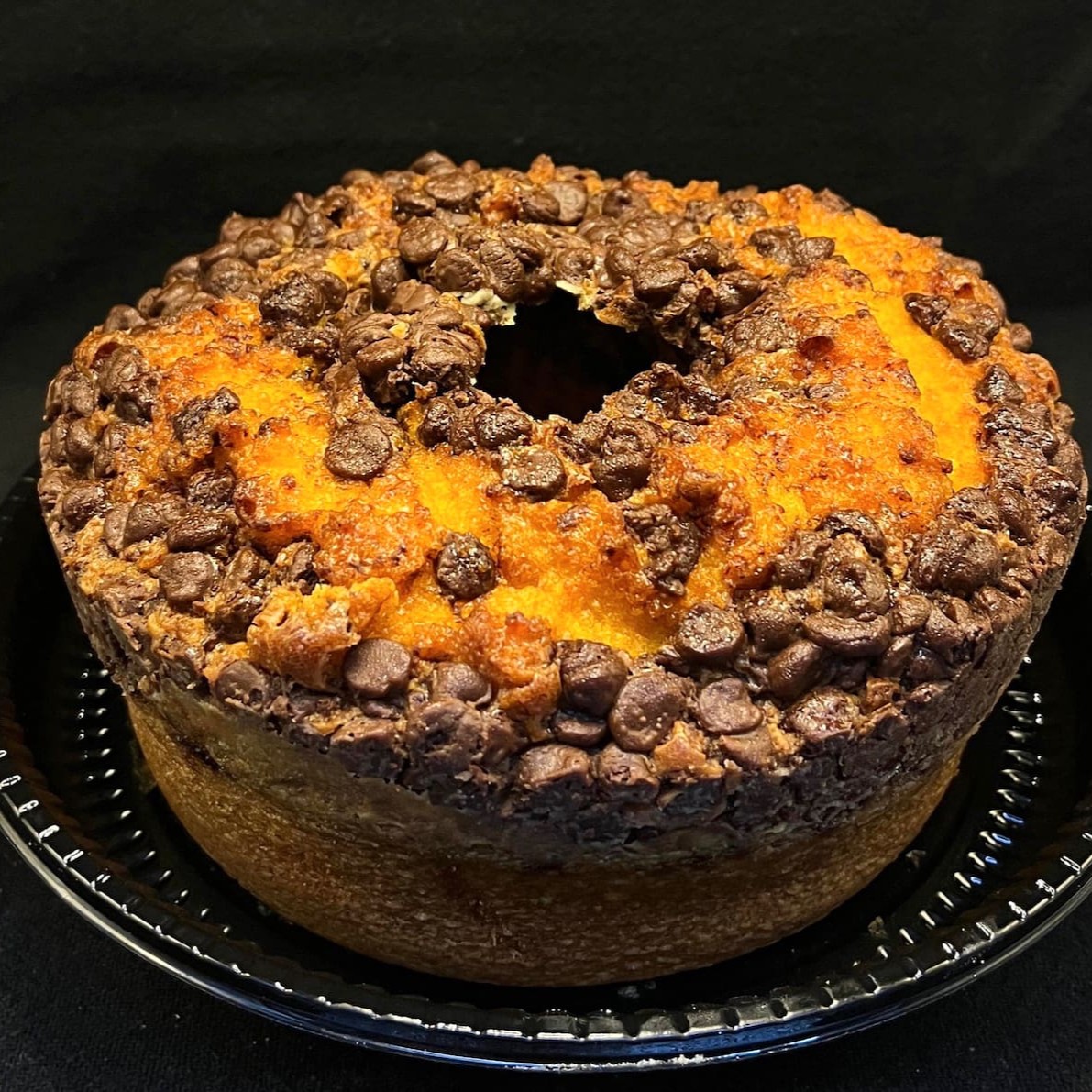 Receita tradicional dessa deliciosa cuca recheada com chocolate ao leite, coberta com muita farofa.
