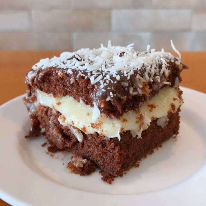 MASSA DE CHOCOLATE, RECHEIO COCADA