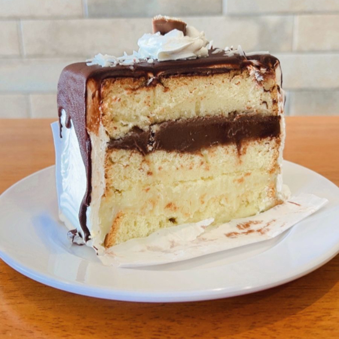 MASSA DE PÃO DE LÓ BRANCA, RECHEIO DE BRIGADEIRO E COCADA