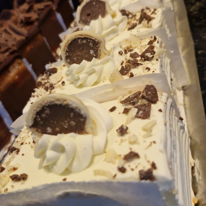 MASSA DE PÃO DE LÓ BRANCA, RECHEIO CHIFFON E BOMBOM OURO BRANCO