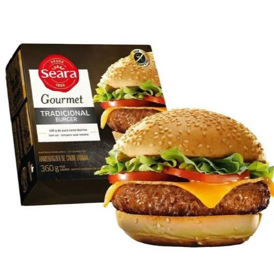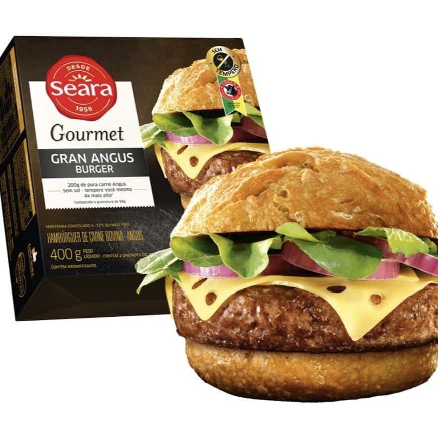 PÃO DE HAMBURGUER, HAMBURGUER 200 GR GRAN ANGUS SEARA, PRESUNTO, QUEIJO, ALAFCE E TOMATE